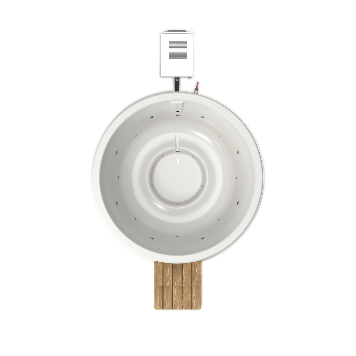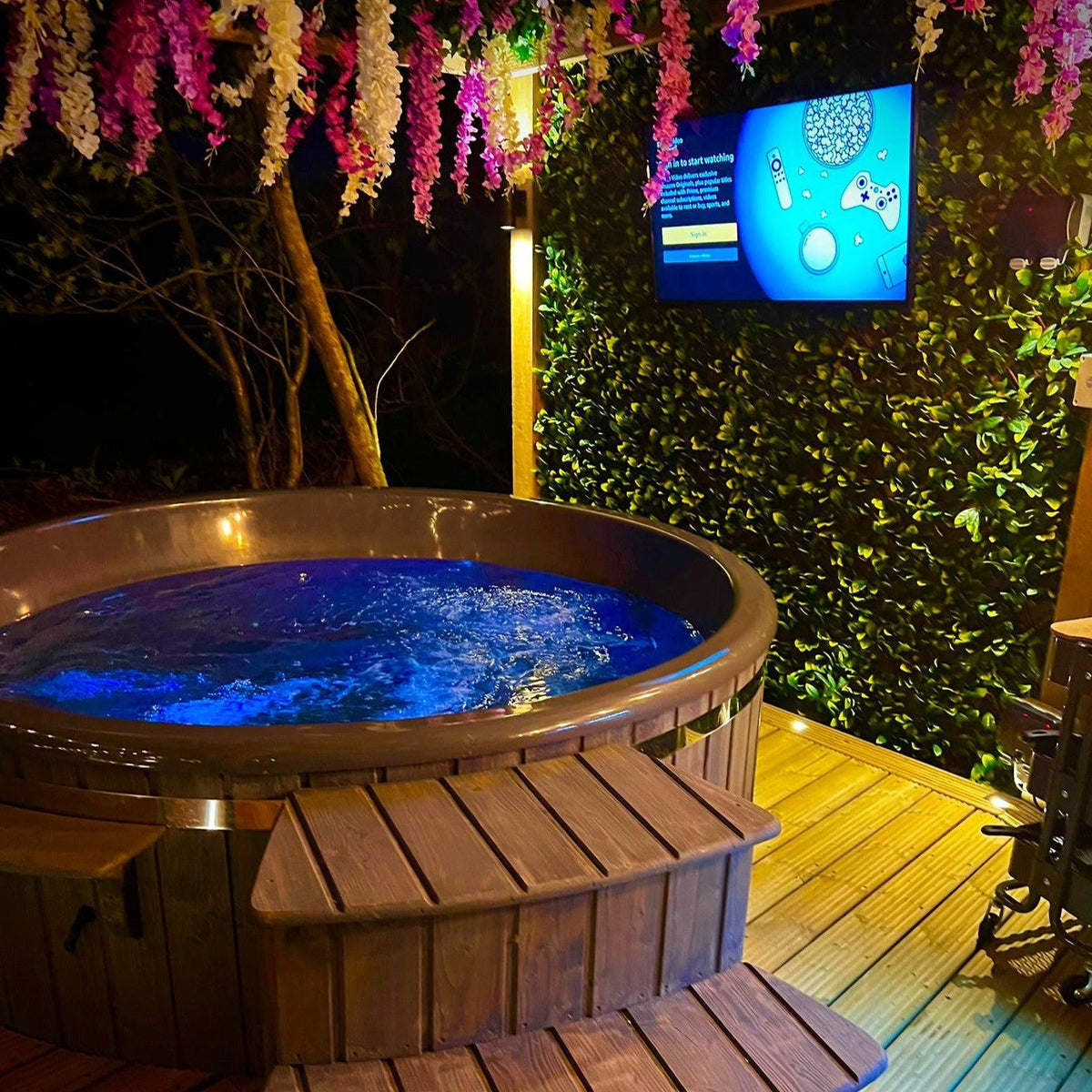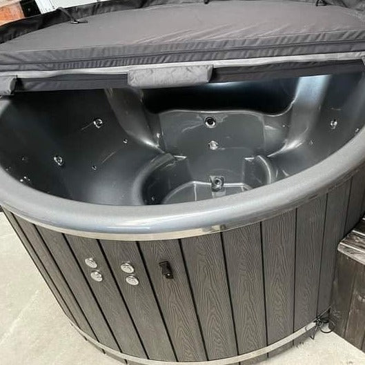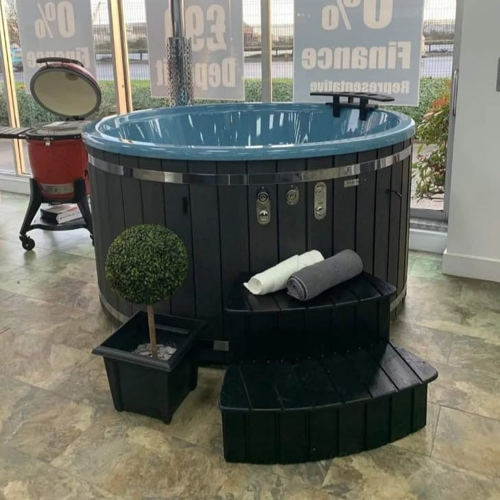 These tubs are clad in Scandinavian spruce, thermowood or composite and are available with an array of extras, an ergonomic liner moulds to your body and the heater is external to the unit on this model providing more space inside for guests, this tub is designed for 4-8 people.