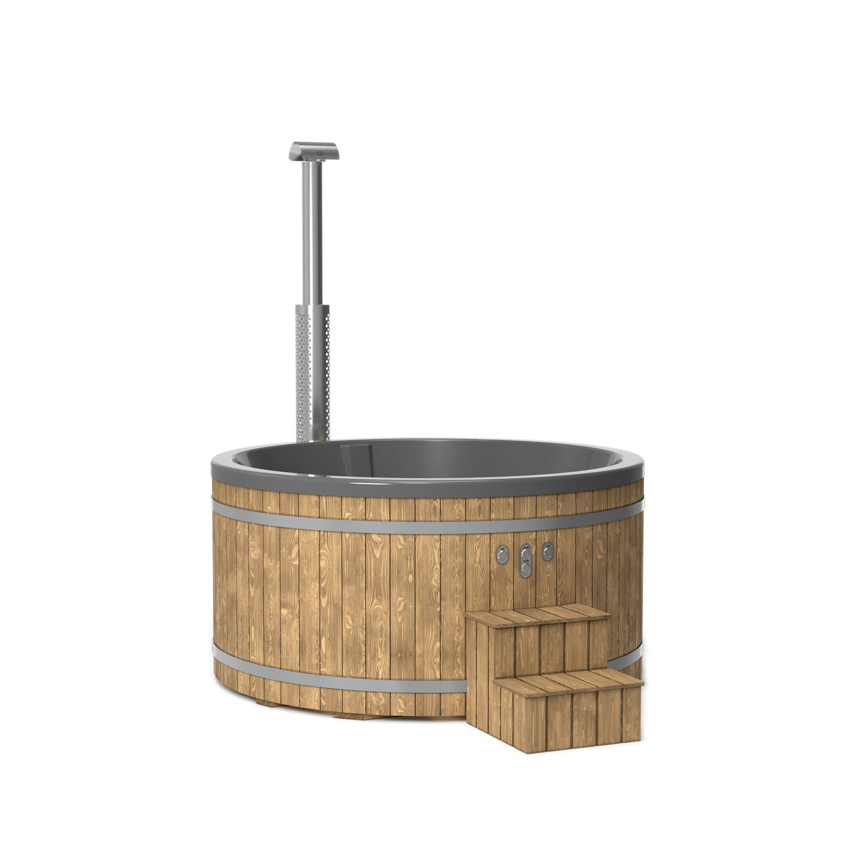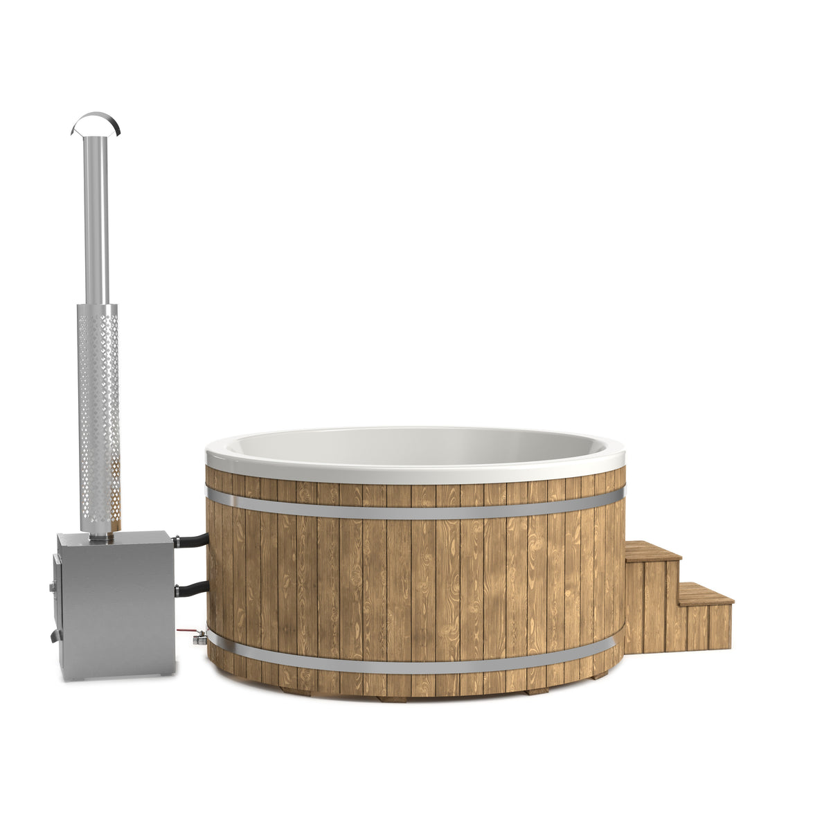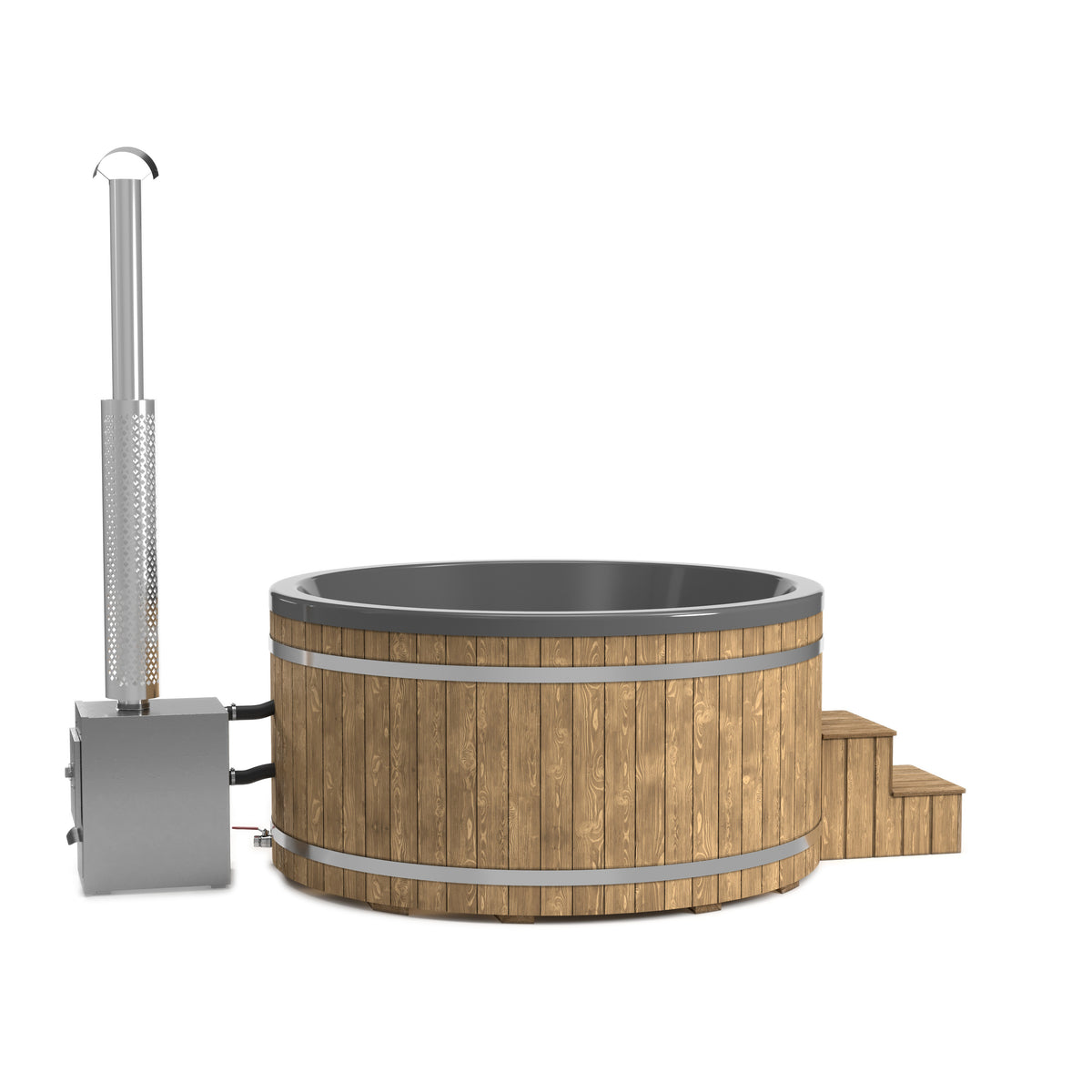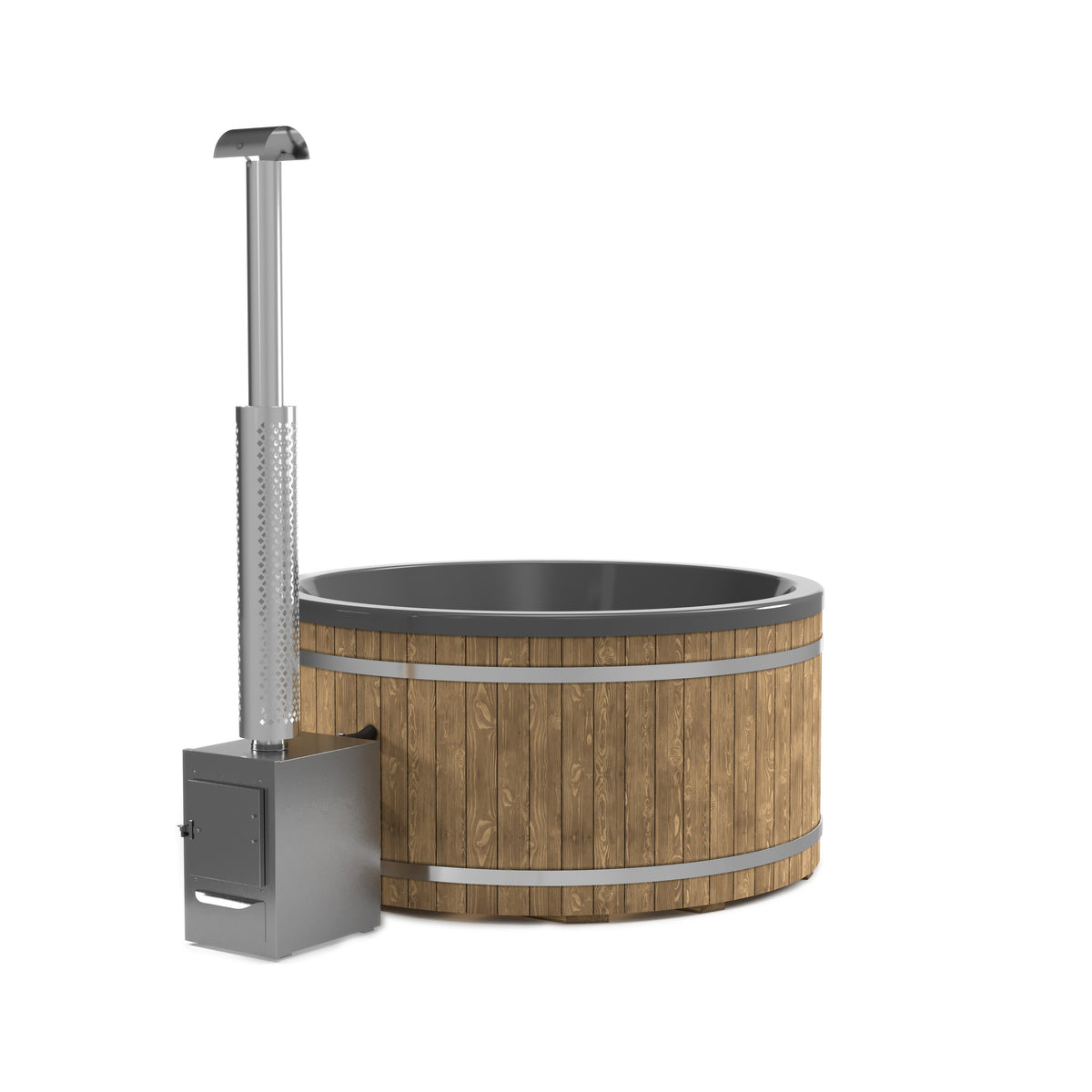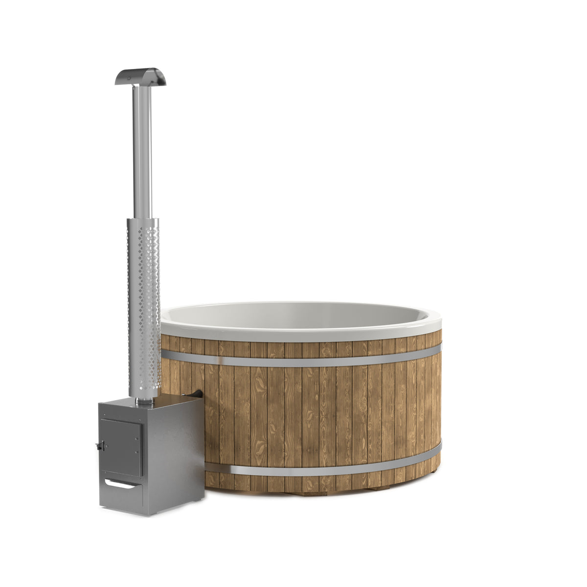 "René" Large 200cm Wood Fired Hot Tub | External Heater | Fibreglass Liner