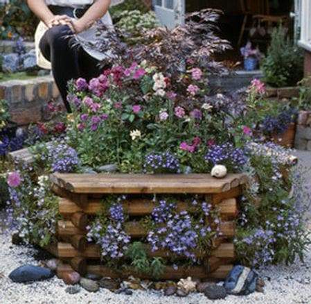 Very simple design that is very quick to assemble, logs can be added if you require a higher planter, seats around the top.
