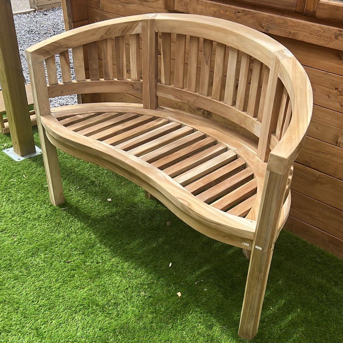 2 seater Solid Teak Curved Banana Bench. Very High Quality and Durable bench made from only the best Teak Hardwood.