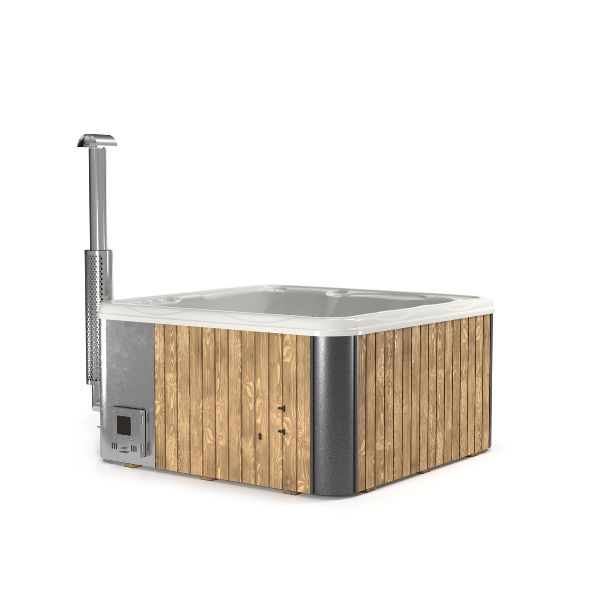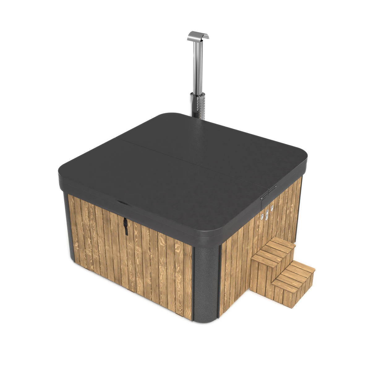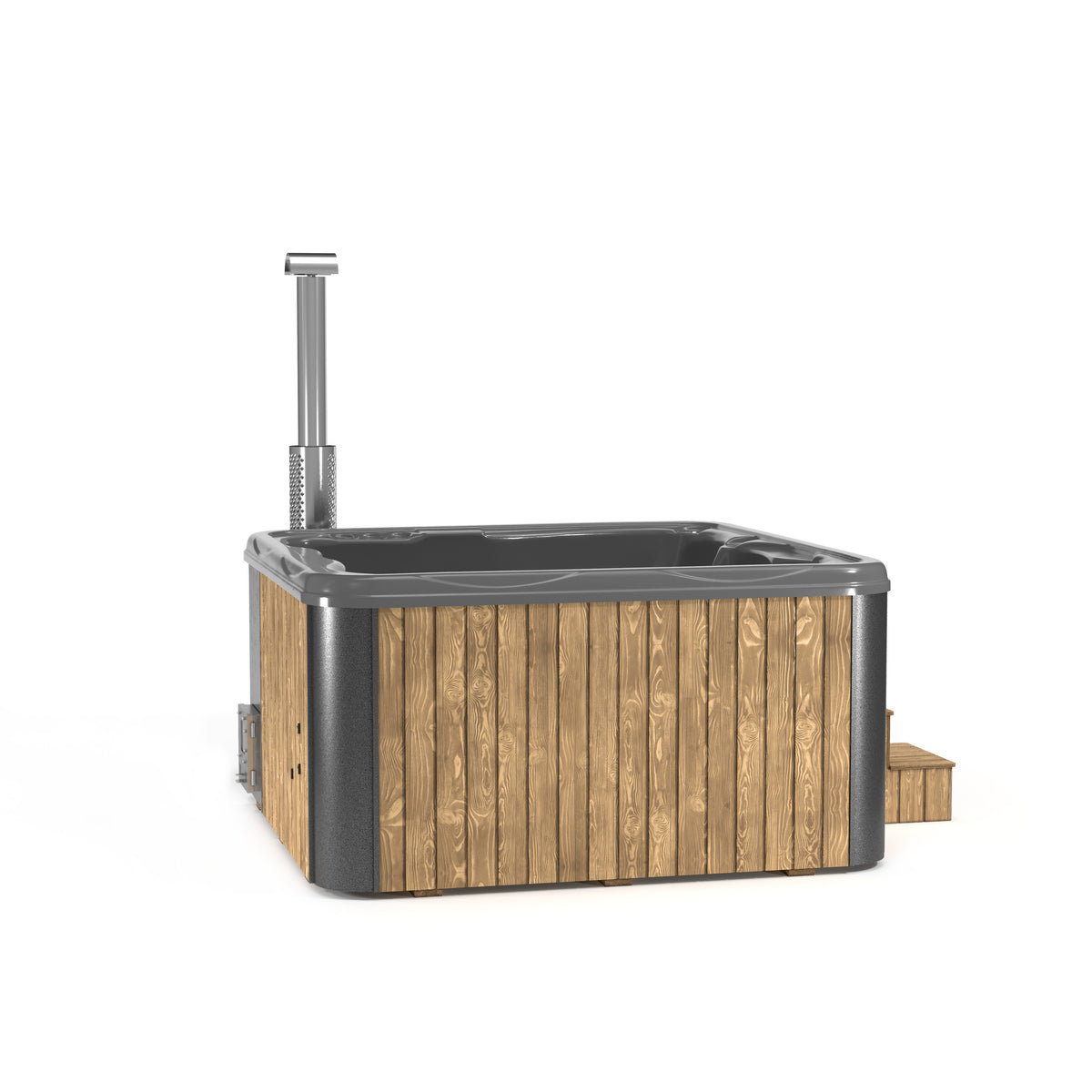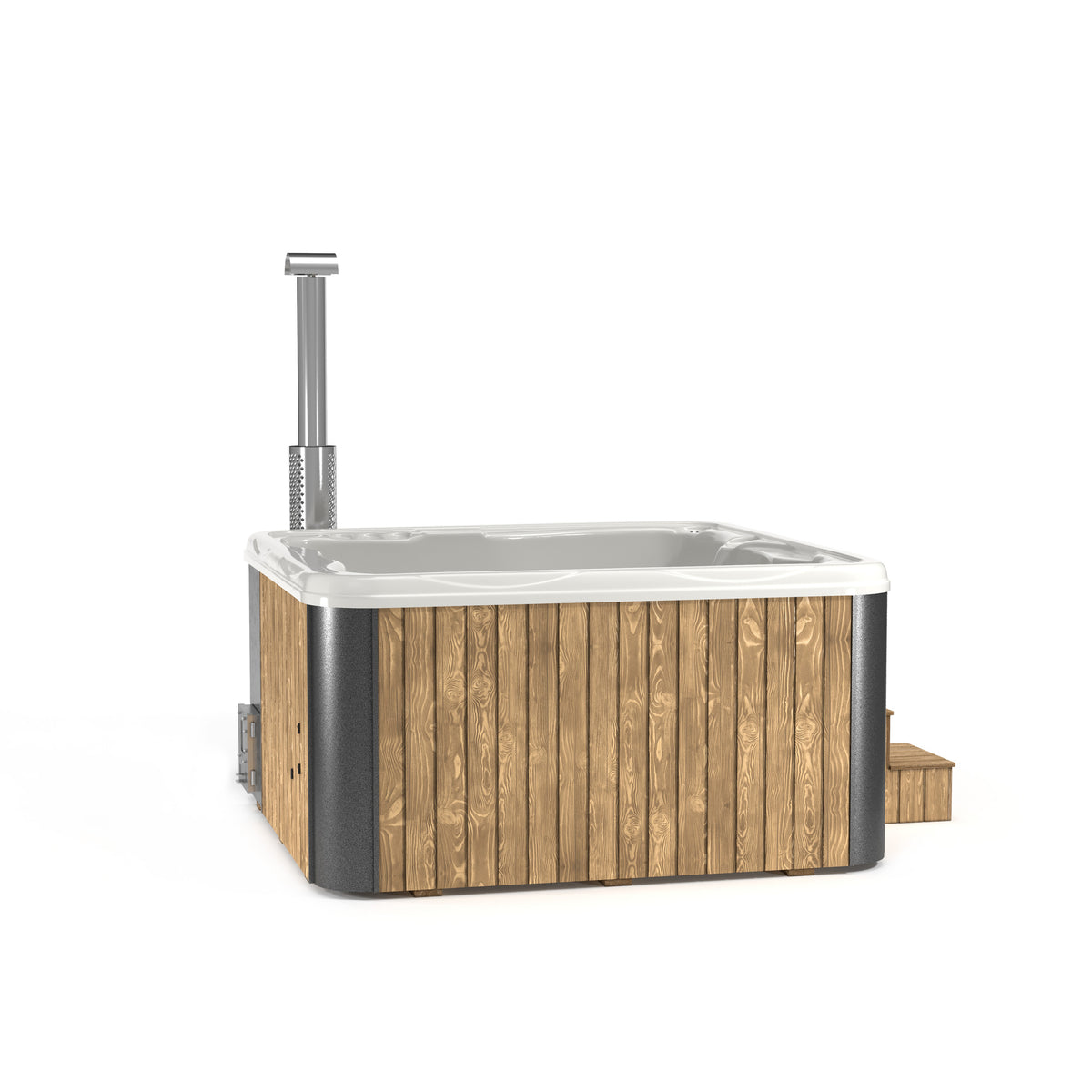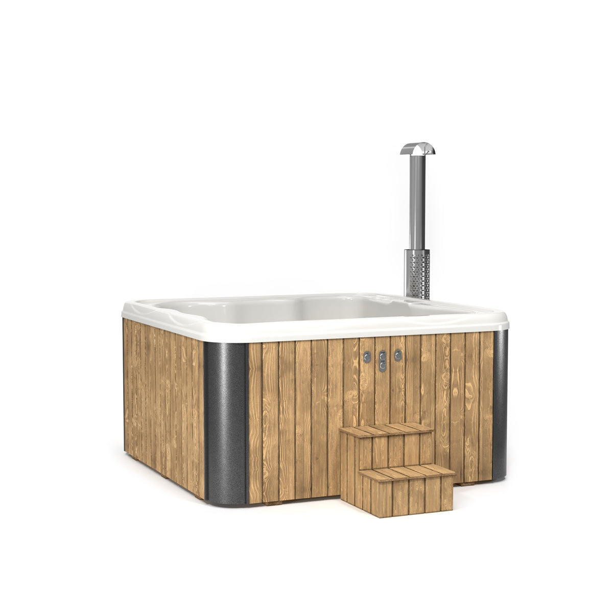 "Gustav" Square Wood Fired Hot Tub | Integrated Heater | Acrylic Sculpted Liner