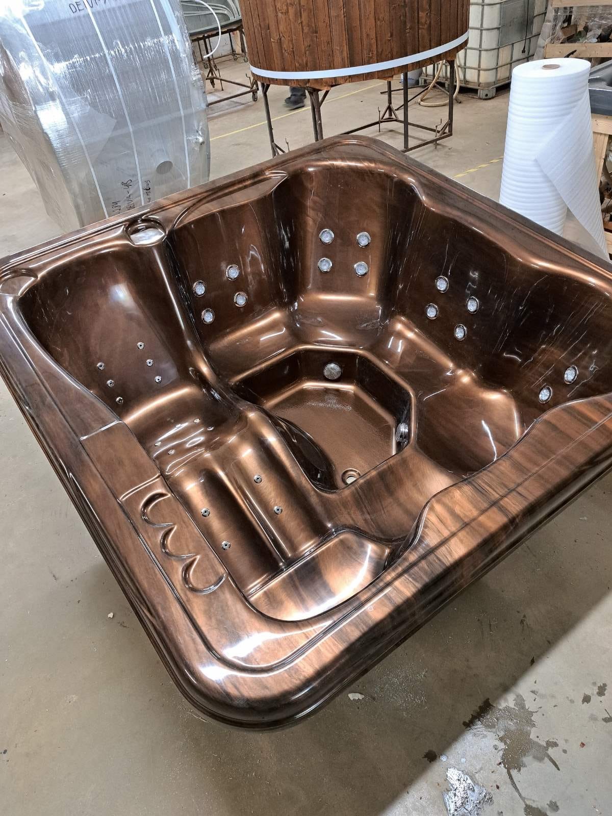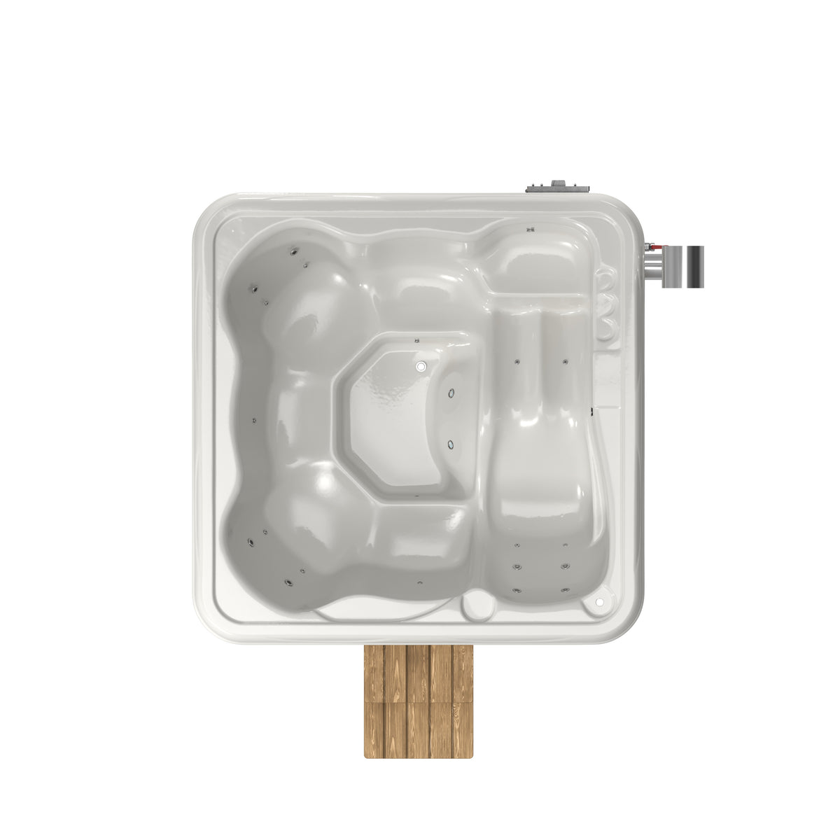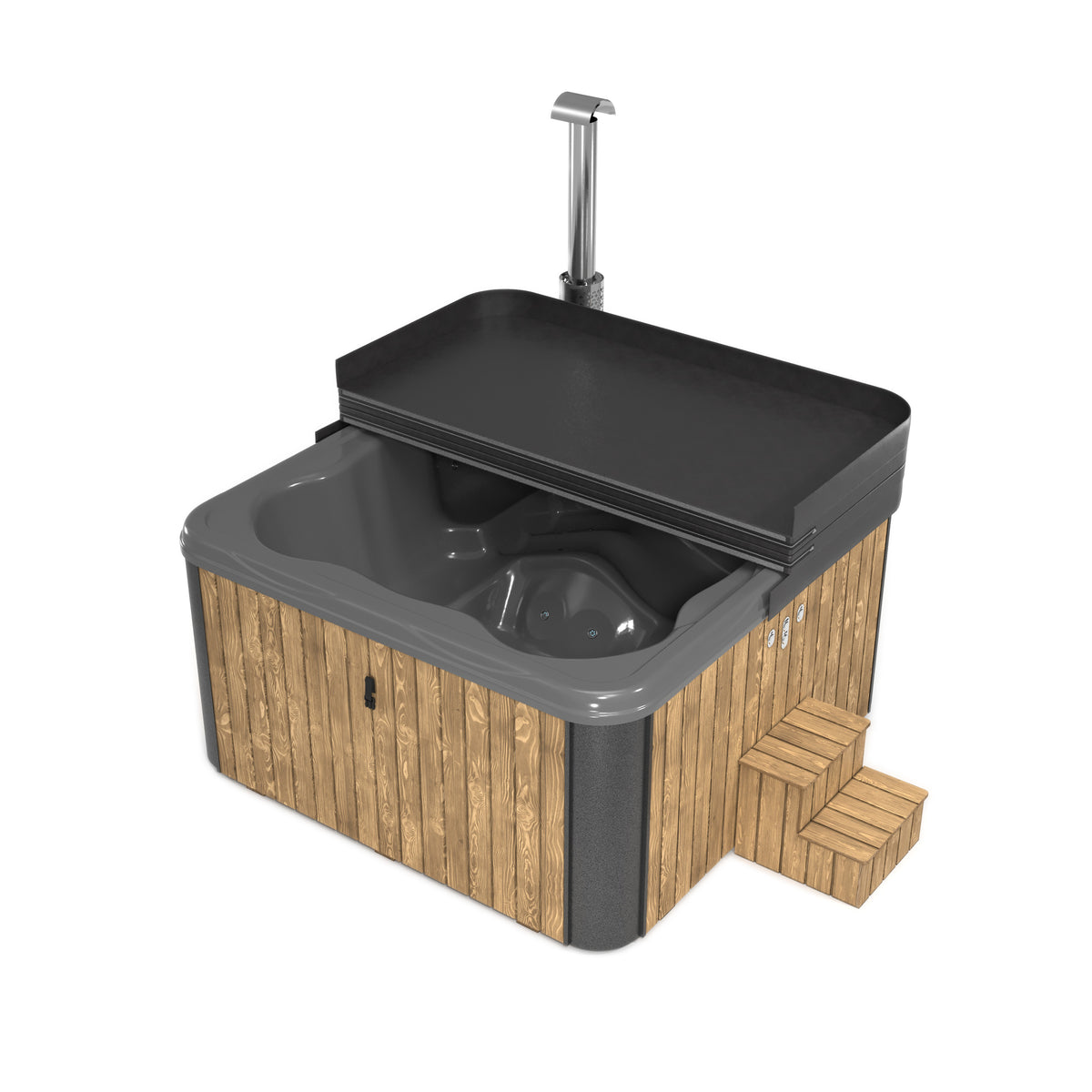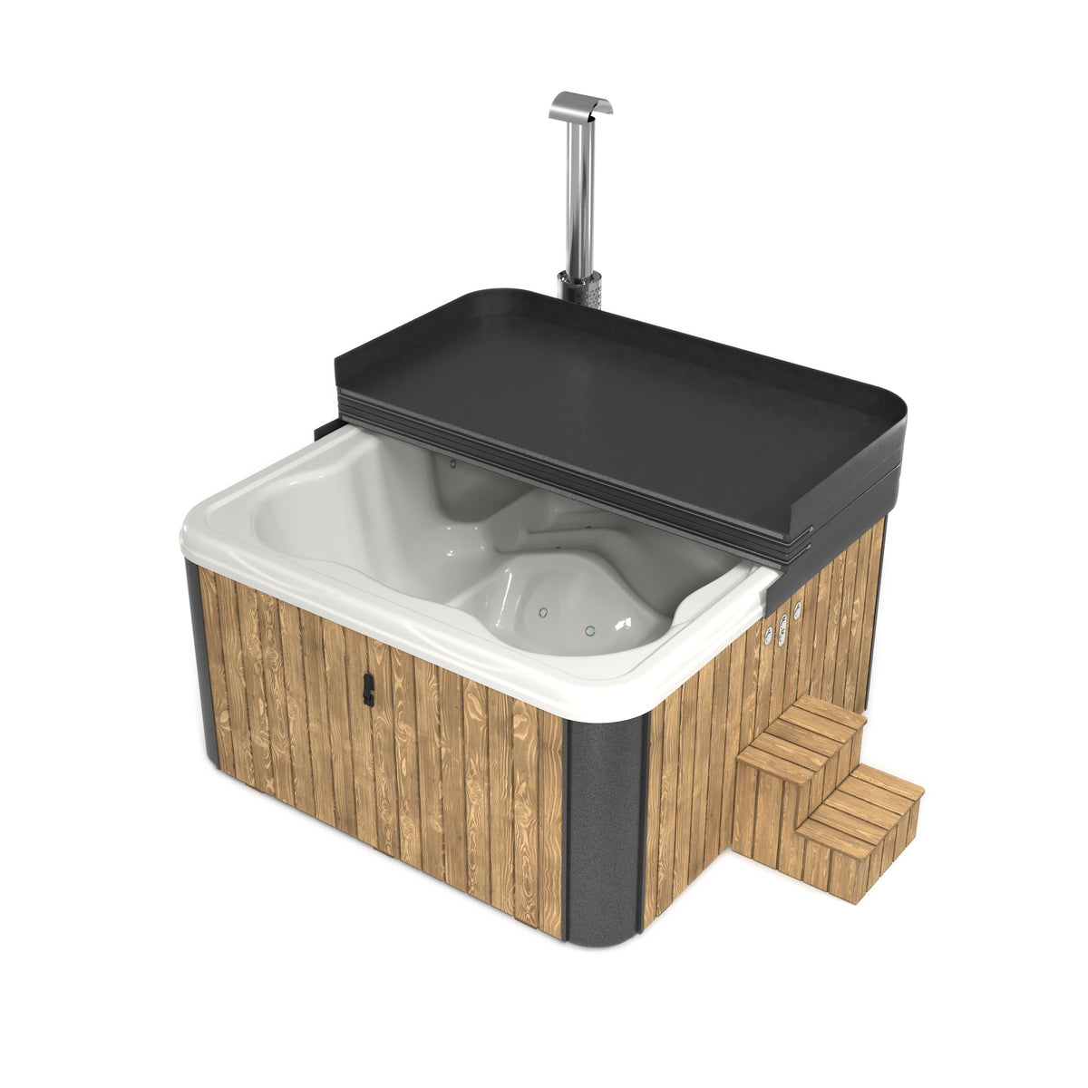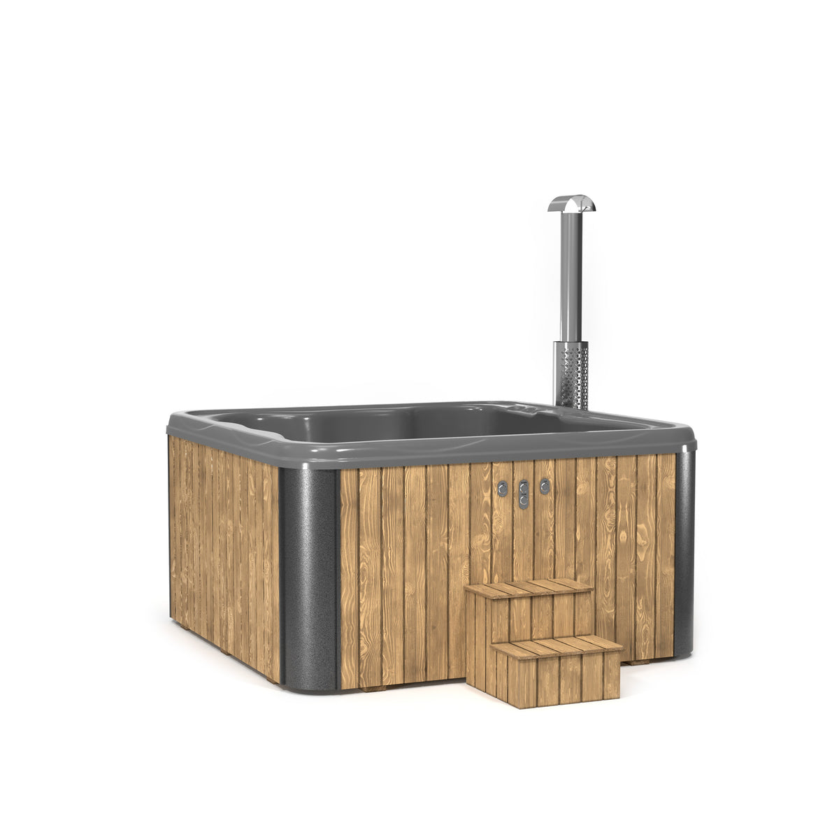 "Gustav" Square Wood Fired Hot Tub | Integrated Heater | Acrylic Sculpted Liner