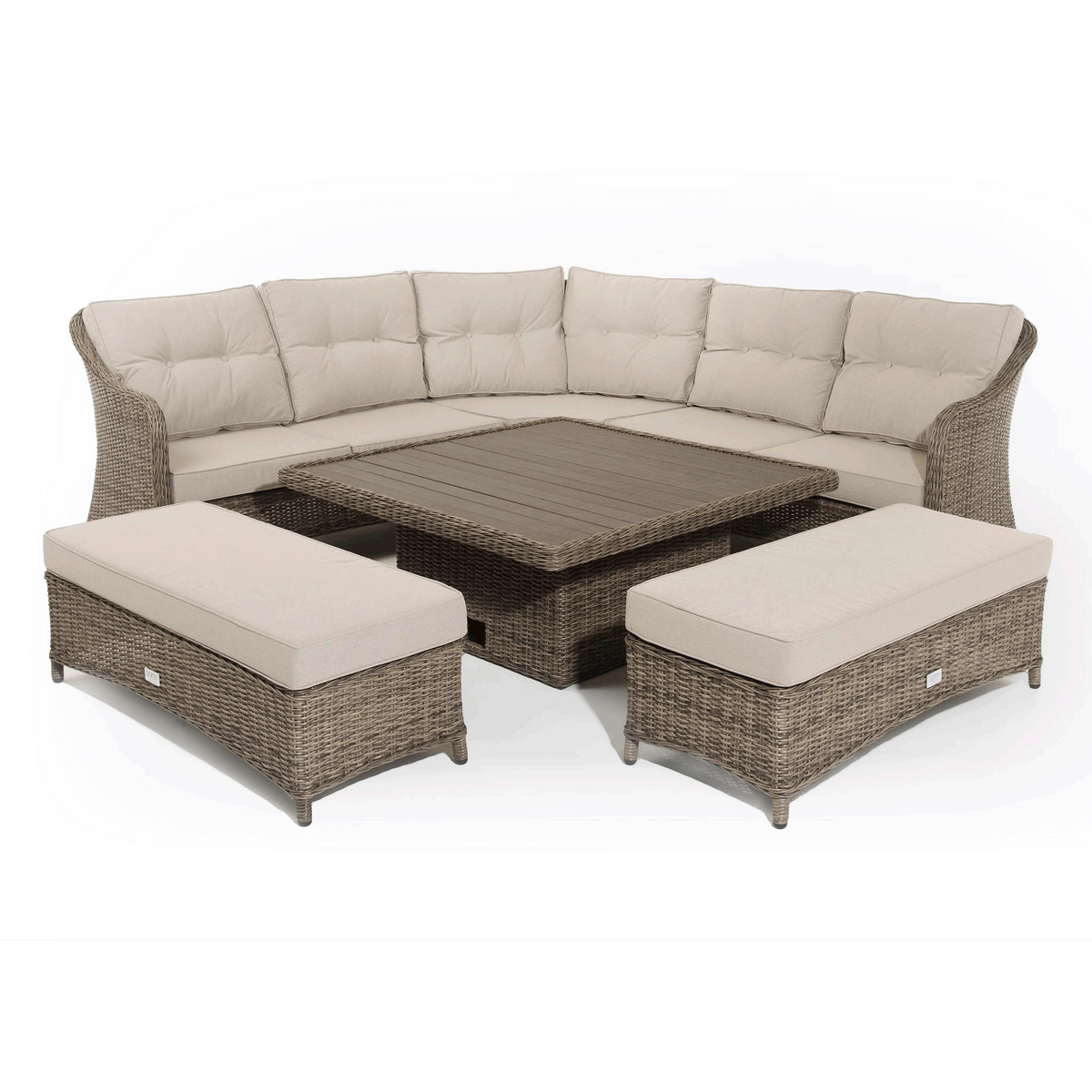 Hazel | Corner Sofa with Rising Table and 2 Benches in Brown Rattan
