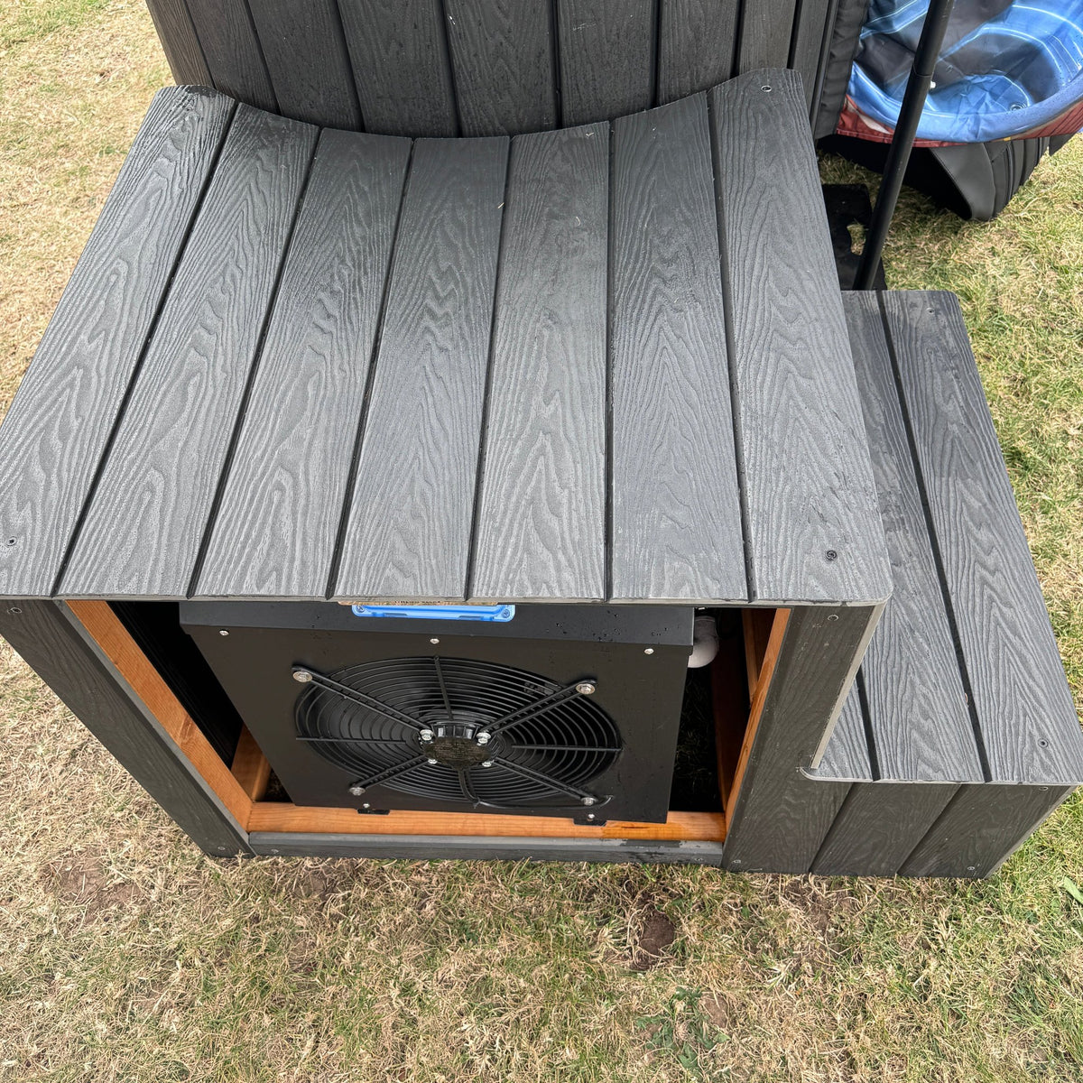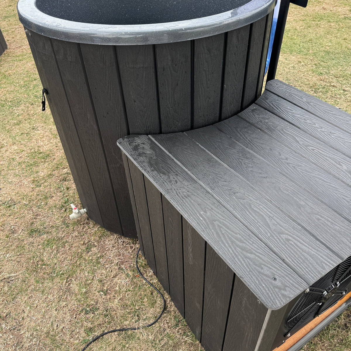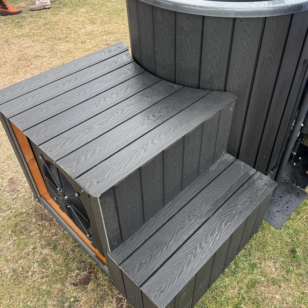 Thermowood clad with a fiberglass liner and drain tap, colour matched timber steps housing the Inverpac cooler/ heat pump, this is our brand new automatic ice bath with a wow factor, for either two people or enough room to lie down, this is your next step in finding your healthy body. There is a whole host of research that backs up the theory that taking regular ice baths is great for our health, from improved skin, improved sleep, better mood, weight loss, reduced stress the list seems endless which was what prompted us to produce this amazing bath.