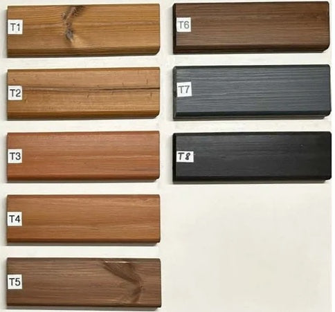 These are the available colours of thermowood, please let us know your colour preference when ordering.