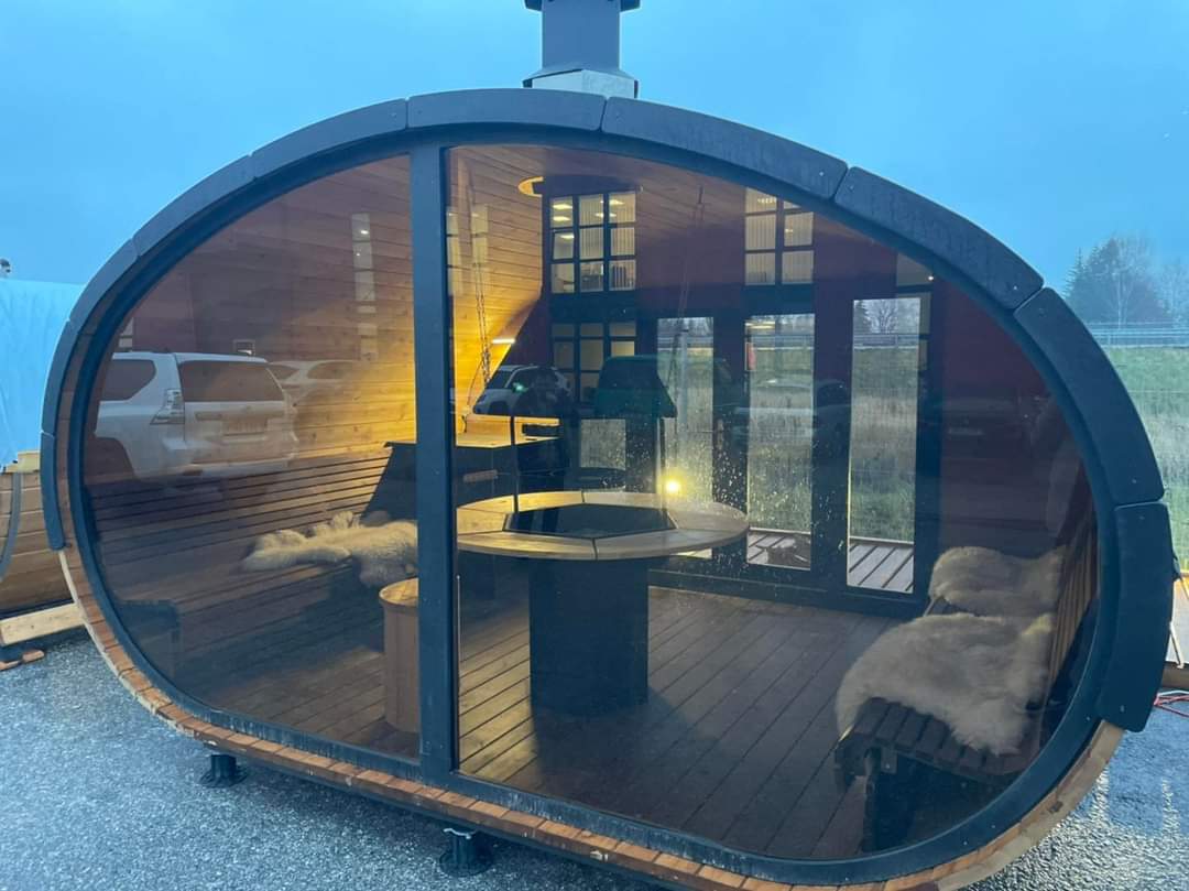 Our amazing Hobbit sauna is a real beauty, this cute and swanky sauna pushes the envelope of lavishness. Fitted with a top-quality Harvia heater; either wood-fired or electric, a front room with bench and table, main sauna room and an optional terrace.